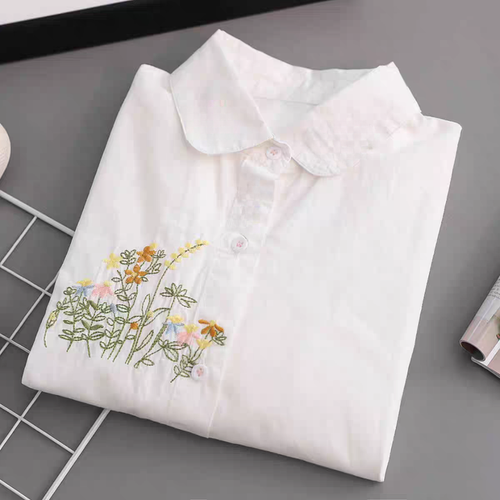 Women Flower Work Linen Cotton Shirt